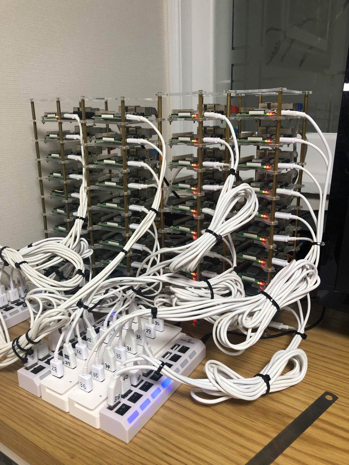 Hardware: 라즈베리파이3 40대, 8port USB 허드 4대, ipTime SW2400 스위치(24포드) 2대