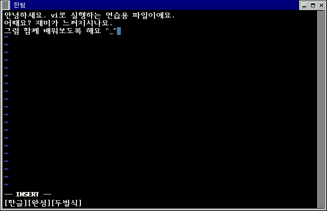 ÇÏ´Ü¿¡ --INSERT--°¡ ³ª¿À¸é¼, ±ÛÀÚ¸¦ ÀÔ·ÂÇÒ ¼ö ÀÖ´Â ÀԷ¸ðµå·Î ¹Ù²ò´Ï´Ù.