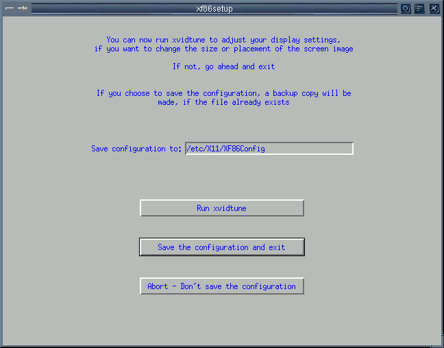 12. ±×¸®°í Save the configuration and exit¸¦ Ŭ¸¯Çϸé ÀúÀåÀÌ µÇ°í, ´ÙÀ½°ú